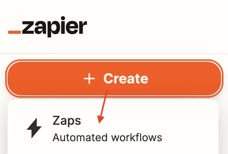 Sign up or log in to Zapier and create a new Zap by clicking the Create button and choosing Zaps, as shown below: