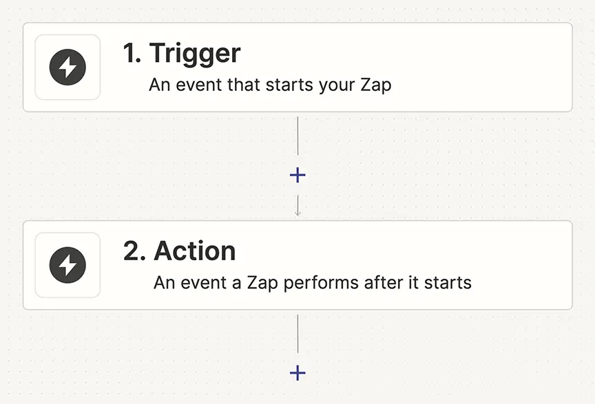 Zapier lets you set up automated workflows called "Zaps" that pass information between two or more apps easily and quickly—no code required. A Zap consists of a Trigger and an Action. A Trigger is an event that starts a Zap; an Action is an event a Zap performs.