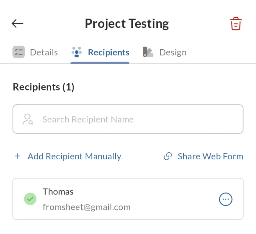 After a few minutes, open that empty project in Momenial, and you should see the recipient from Google Sheets.